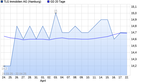 Mit dem Rücksetzer auf 14,70 EUR hat die TLG Immobilien-Aktie am 21.04.2025 die 20-Tage-Linie nach unten gekreuzt.
