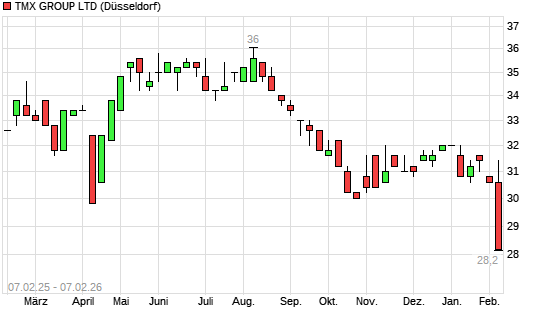 Mit dem Rücksetzer auf 28,60 EUR hat die TMX Group-Aktie (ISIN CA87262K1057) am 06.02.2026 ein neues 12-Monats-Tief erreicht und damit den Kurs vom 04.02.2026 eingestellt.