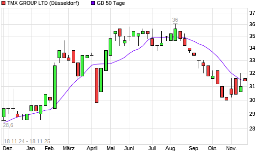 Mit dem Anstieg auf 33,00 EUR hat die TMX Group-Aktie am 17.11.2025 die 50-Tage-Linie nach oben gekreuzt.
