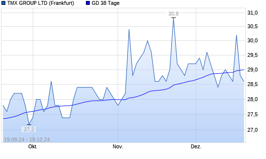 Mit dem Rücksetzer auf 28,80 EUR hat die TMX Group-Aktie am 18.12.2024 die 38-Tage-Linie nach unten gekreuzt.
