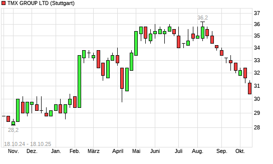 Mit dem Rücksetzer auf 30,20 EUR hat die TMX Group-Aktie (ISIN CA87262K1057) am 17.10.2025 ein neues 6-Monats-Tief erreicht und damit den Kurs vom 16.10.2025 eingestellt.Die TMX Group-Aktie ...weiterlesen