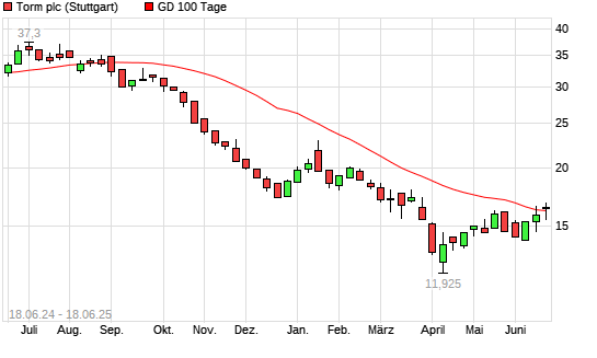 Mit dem Anstieg auf 16,75 EUR hat die TORM-Aktie am 17.06.2025 die 100-Tage-Linie nach oben gekreuzt.