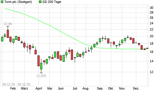 Mit dem Anstieg auf 17,18 EUR hat die TORM-Aktie am 29.12.2025 die 200-Tage-Linie nach oben gekreuzt.
