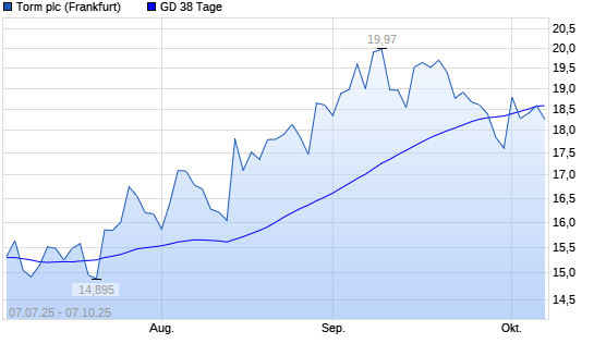 Mit dem Anstieg auf 18,58 EUR hat die TORM-Aktie am 06.10.2025 die 38-Tage-Linie nach oben gekreuzt.