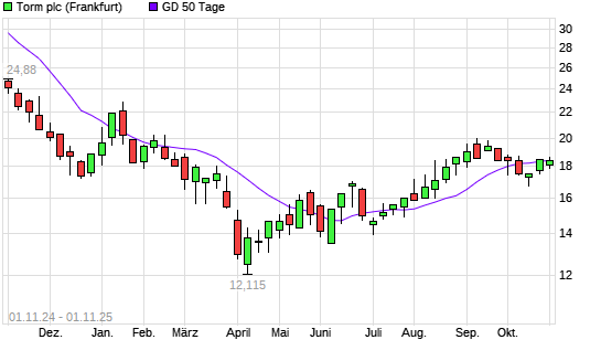 Mit dem Rücksetzer auf 18,40 EUR hat die TORM-Aktie am 31.10.2025 die 50-Tage-Linie nach unten gekreuzt.