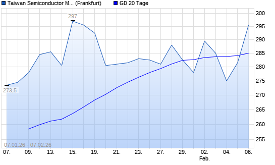 Mit dem Anstieg auf 295,50 EUR hat die TSMC-Aktie am 06.02.2026 die 20-Tage-Linie nach oben gekreuzt.
