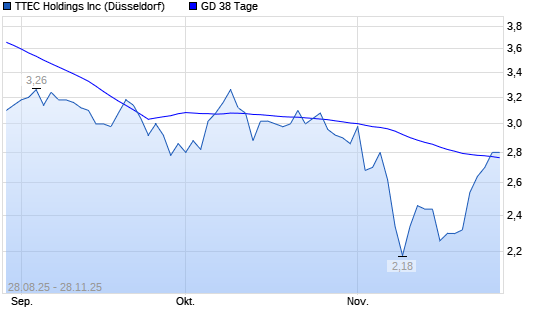 Mit dem Anstieg auf 2,80 EUR hat die TTEC Holdings-Aktie am 27.11.2025 die 38-Tage-Linie nach oben gekreuzt.