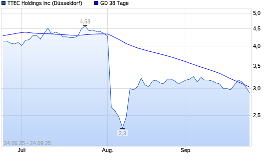 Mit dem Rücksetzer auf 3,04 EUR hat die TTEC Holdings-Aktie am 23.09.2025 die 38-Tage-Linie nach unten gekreuzt.