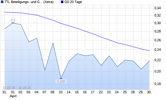 Mit dem Rücksetzer auf 0,18 EUR hat die TTL Information Technology AG-Aktie am 29.04.2025 die 20-Tage-Linie nach unten gekreuzt.