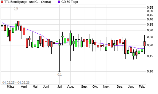 Mit dem Rücksetzer auf 0,14 EUR hat die TTL Information Technology AG-Aktie am 03.02.2026 die 50-Tage-Linie nach unten gekreuzt.