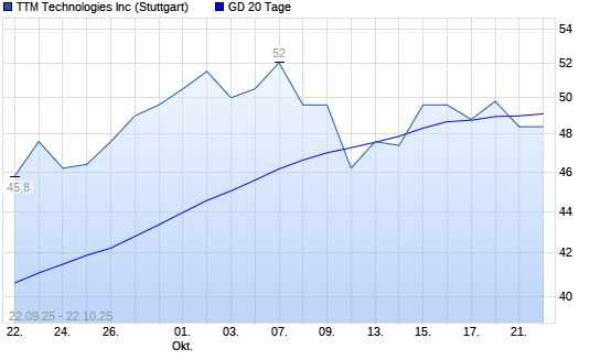 Mit dem Anstieg auf 49,20 EUR hat die TTM Technologies-Aktie am 21.10.2025 die 20-Tage-Linie nach oben gekreuzt.