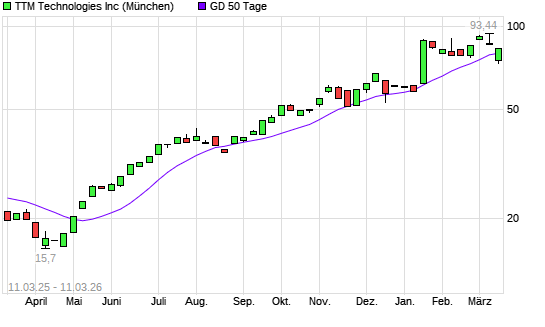 Mit dem Anstieg auf 82,00 EUR hat die TTM Technologies-Aktie am 10.03.2026 die 50-Tage-Linie nach oben gekreuzt.