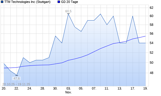Mit dem Rücksetzer auf 54,00 EUR hat die TTM Technologies-Aktie am 18.11.2025 die 20-Tage-Linie nach unten gekreuzt.