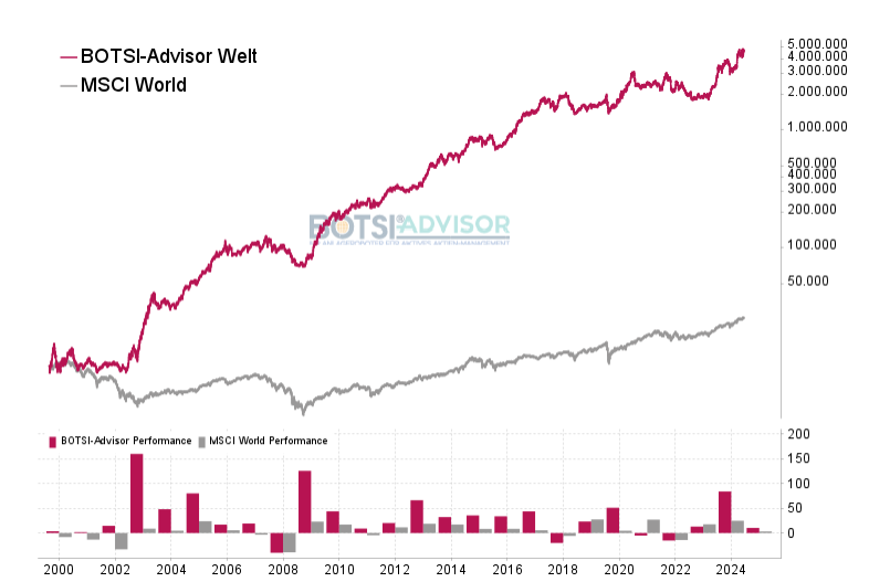 Der BOTSI®-Advisor (BOTSI® steht für Best-of-Trends-System-Investment) ist ein nach neuesten wissenschaftlichen Erkenntnissen zur Trendfolge entwickelter Anlageroboter zur aktiven Steuerung von Aktienportfolios. Mit seiner Hilfe werden im wöchentlichen Turnus die jeweils trendstärksten Aktien aus einem großen Anlageuniversum rein regelbasiert herausgefiltert und in ein Musterdepot aufgenommen. Die Titelauswahl basiert dabei ausschließlich auf solchen Trend- und Momentum-Indikatoren, deren Mehrwert in international renommierten wissenschaftlichen Studien nachgewiesen wurde.