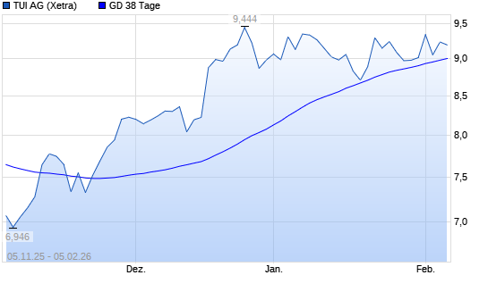 Mit dem Anstieg auf 9,18 EUR hat die TUI-Aktie am 04.02.2026 die 38-Tage-Linie nach oben gekreuzt.