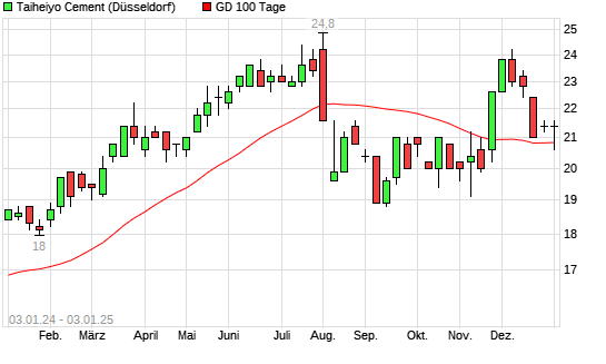 Mit dem Rücksetzer auf 20,60 EUR hat die Taiheiyo Cement-Aktie am 02.01.2025 die 100-Tage-Linie nach unten gekreuzt.