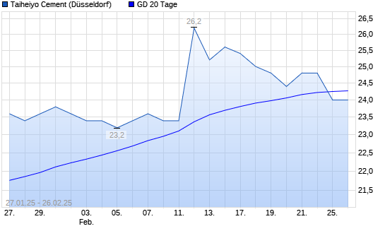 Mit dem Rücksetzer auf 24,20 EUR hat die Taiheiyo Cement-Aktie am 25.02.2025 die 20-Tage-Linie nach unten gekreuzt.