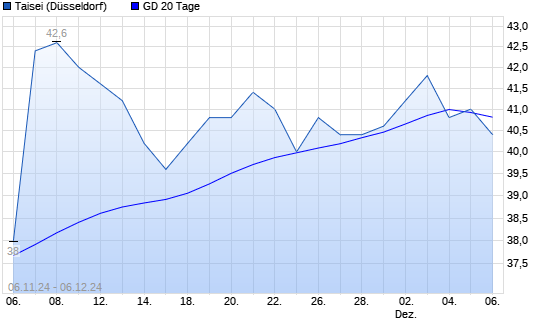 Mit dem Anstieg auf 41,40 EUR hat die Taisei-Aktie am 05.12.2024 die 20-Tage-Linie nach oben gekreuzt.