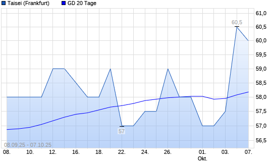 Mit dem Anstieg auf 60,50 EUR hat die Taisei-Aktie am 06.10.2025 die 20-Tage-Linie nach oben gekreuzt.