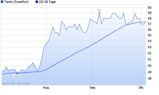 Mit dem Anstieg auf 57,50 EUR hat die Taisei-Aktie am 03.10.2025 die 38-Tage-Linie nach oben gekreuzt.