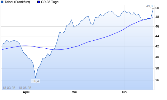 Mit dem Rücksetzer auf 47,60 EUR hat die Taisei-Aktie am 17.06.2025 die 38-Tage-Linie nach unten gekreuzt.