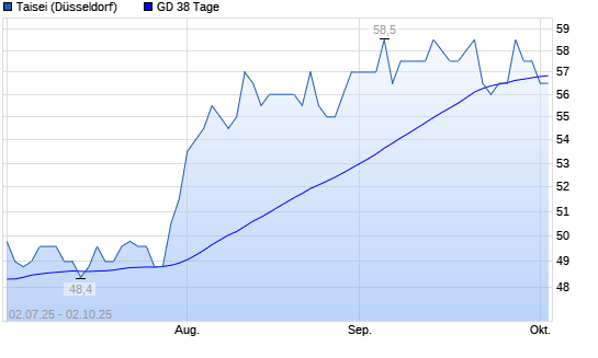 Mit dem Rücksetzer auf 57,00 EUR hat die Taisei-Aktie am 01.10.2025 die 38-Tage-Linie nach unten gekreuzt.