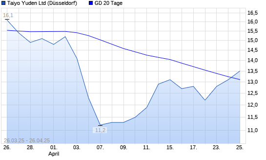 Mit dem Anstieg auf 13,50 EUR hat die Taiyo Yuden-Aktie am 25.04.2025 die 20-Tage-Linie nach oben gekreuzt.