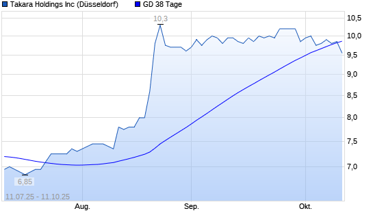 Mit dem Rücksetzer auf 9,85 EUR hat die Takara Holdings-Aktie am 10.10.2025 die 38-Tage-Linie nach unten gekreuzt.