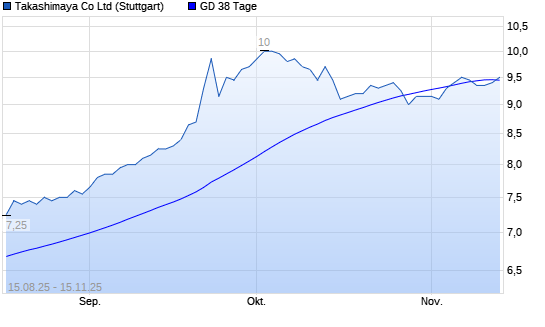 Mit dem Anstieg auf 9,45 EUR hat die Takashimaya-Aktie am 14.11.2025 die 38-Tage-Linie nach oben gekreuzt.