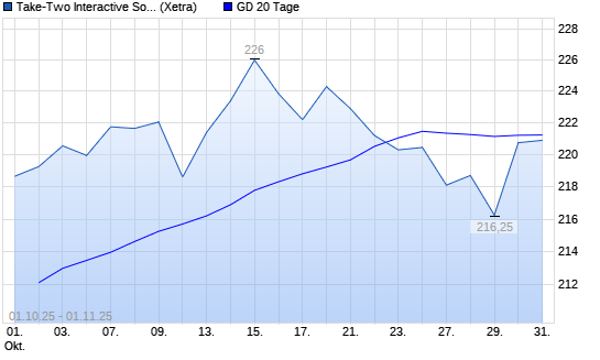 Mit dem Anstieg auf 223,20 EUR hat die Take 2 Interactive-Aktie am 31.10.2025 die 20-Tage-Linie nach oben gekreuzt.