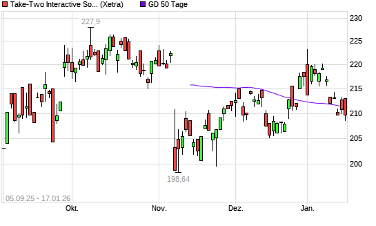 Mit dem Rücksetzer auf 209,00 EUR hat die Take 2 Interactive-Aktie am 16.01.2026 die 50-Tage-Linie nach unten gekreuzt.