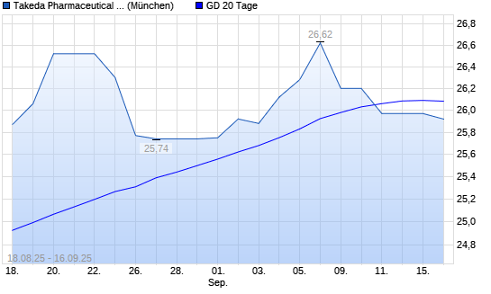 Mit dem Anstieg auf 25,95 EUR hat die Takeda Pharmaceutical-Aktie am 15.09.2025 die 20-Tage-Linie nach oben gekreuzt.