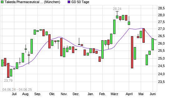 Mit dem Anstieg auf 26,04 EUR hat die Takeda Pharmaceutical-Aktie am 03.06.2025 die 50-Tage-Linie nach oben gekreuzt.