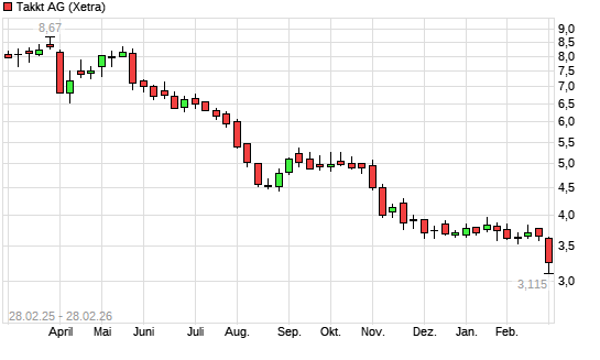 Mit dem Rücksetzer auf 3,27 EUR hat die Takkt-Aktie (ISIN DE0007446007) am 27.02.2026 ein neues All-Time-Low erreicht und damit den Kurs vom 25.02.2026 eingestellt.