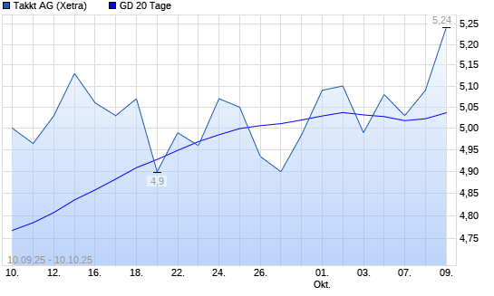 Mit dem Rücksetzer auf 5,03 EUR hat die Takkt-Aktie am 09.10.2025 die 20-Tage-Linie nach unten gekreuzt.