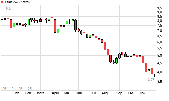 Mit dem Rücksetzer auf 3,77 EUR hat die Takkt-Aktie (ISIN DE0007446007) am 25.11.2025 ein neues 10-Jahres-Tief erreicht und damit den Kurs vom 21.11.2025 eingestellt.Die ...weiterlesen