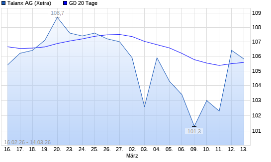 Mit dem Anstieg auf 105,70 EUR hat die Talanx-Aktie am 13.03.2026 die 20-Tage-Linie nach oben gekreuzt.