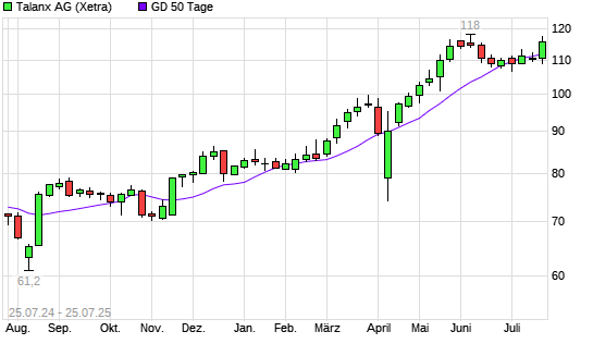 Mit dem Anstieg auf 116,30 EUR hat die Talanx-Aktie am 24.07.2025 die 50-Tage-Linie nach oben gekreuzt.