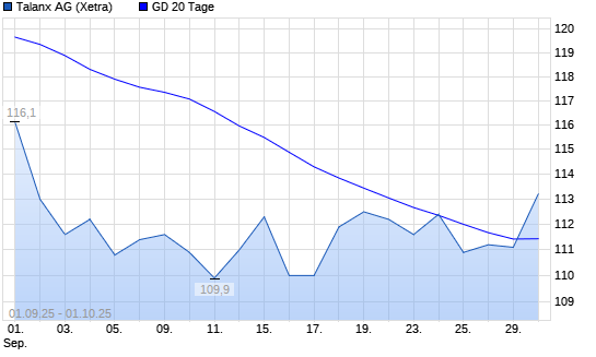 Mit dem Rücksetzer auf 110,80 EUR hat die Talanx-Aktie am 30.09.2025 die 20-Tage-Linie nach unten gekreuzt.