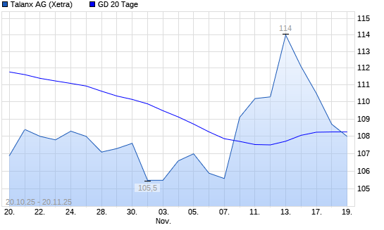 Mit dem Rücksetzer auf 107,50 EUR hat die Talanx-Aktie am 19.11.2025 die 20-Tage-Linie nach unten gekreuzt.