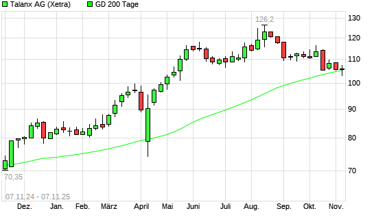 Mit dem Rücksetzer auf 105,10 EUR hat die Talanx-Aktie am 06.11.2025 die 200-Tage-Linie nach unten gekreuzt.