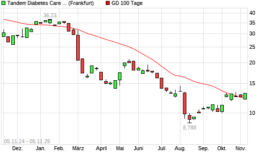 Mit dem Anstieg auf 12,34 EUR hat die Tandem Diabetes Care-Aktie am 04.11.2025 die 100-Tage-Linie nach oben gekreuzt.
