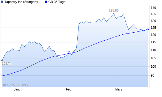 Mit dem Anstieg auf 124,00 EUR hat die Tapestry-Aktie am 17.03.2026 die 38-Tage-Linie nach oben gekreuzt.