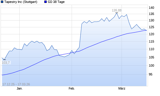 Mit dem Rücksetzer auf 122,38 EUR hat die Tapestry-Aktie am 16.03.2026 die 38-Tage-Linie nach unten gekreuzt.
