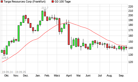 Mit dem Anstieg auf 144,25 EUR hat die Targa Resources-Aktie am 18.09.2025 die 100-Tage-Linie nach oben gekreuzt.