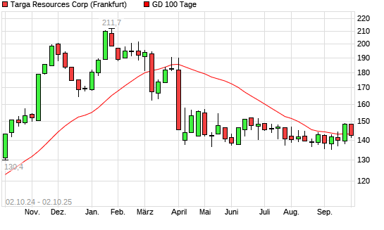Mit dem Anstieg auf 143,10 EUR hat die Targa Resources-Aktie am 01.10.2025 die 100-Tage-Linie nach oben gekreuzt.