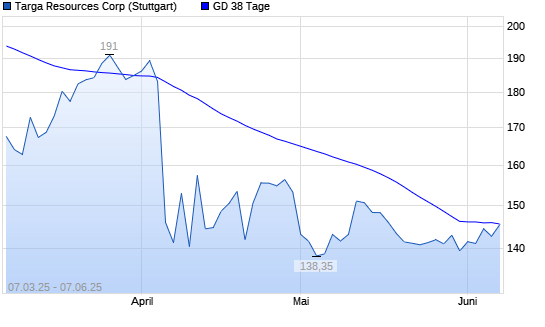 Mit dem Anstieg auf 146,55 EUR hat die Targa Resources-Aktie am 06.06.2025 die 38-Tage-Linie nach oben gekreuzt.