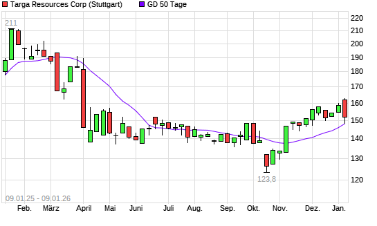 Mit dem Anstieg auf 151,70 EUR hat die Targa Resources-Aktie am 08.01.2026 die 50-Tage-Linie nach oben gekreuzt.