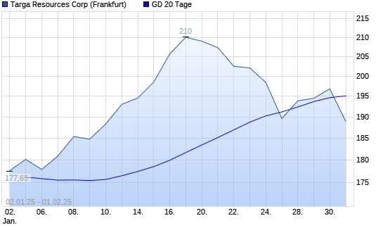 Mit dem Rücksetzer auf 188,90 EUR hat die Targa Resources-Aktie am 31.01.2025 die 20-Tage-Linie nach unten gekreuzt.