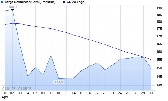 Mit dem Rücksetzer auf 150,05 EUR hat die Targa Resources-Aktie am 30.04.2025 die 20-Tage-Linie nach unten gekreuzt.